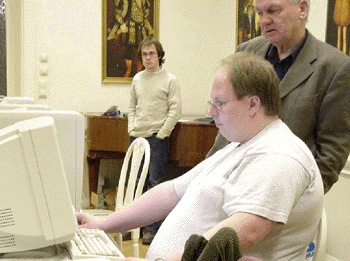 Håkan matar in partier för er på nätet, medan tävlingsgeneralen Håkan Åkvist tittar på. I bakgrunden övervakar Jonas Forslund tekniken